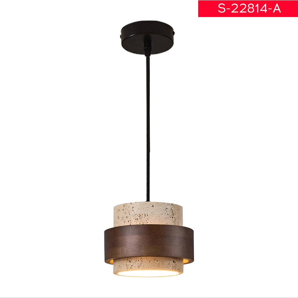 مصباح معلق أودي E27 A، طراز من الحجر الجيري والجوز