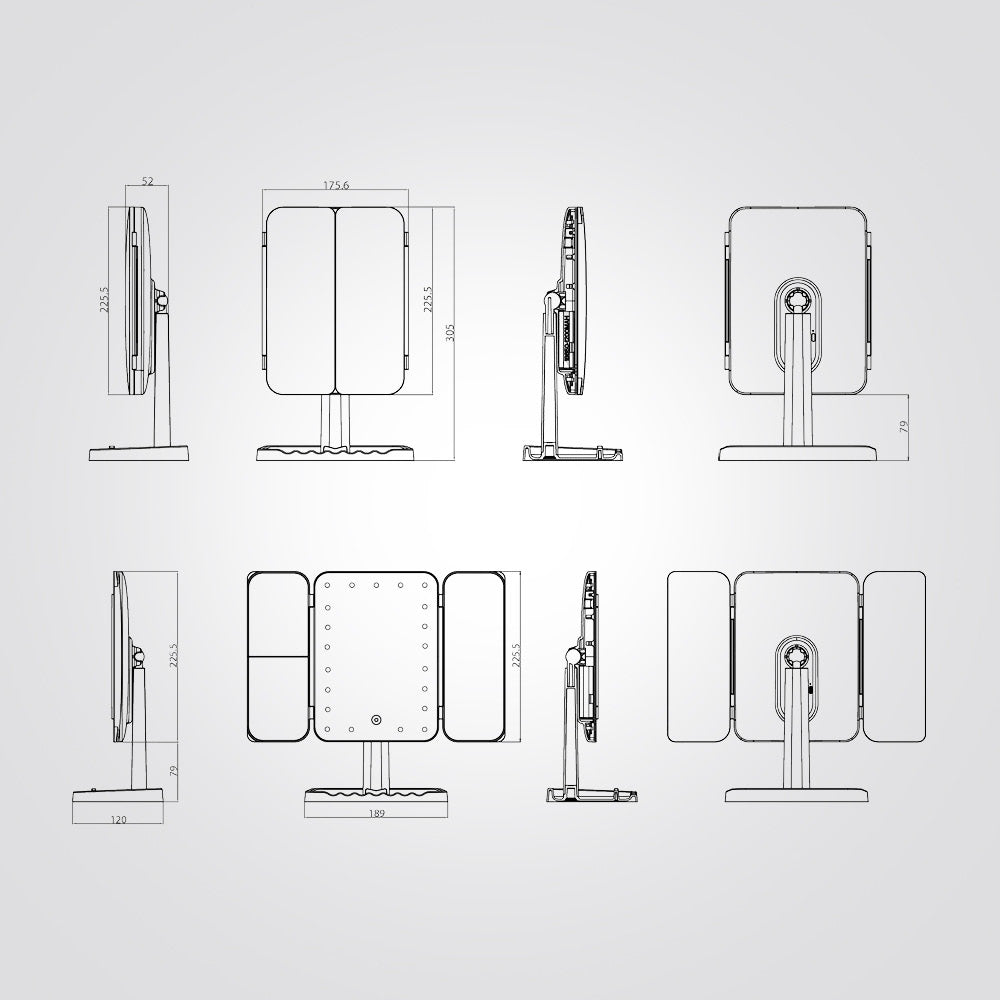 10W מראת איפור נטען ניידת+זכוכית מגדלת+עימעום