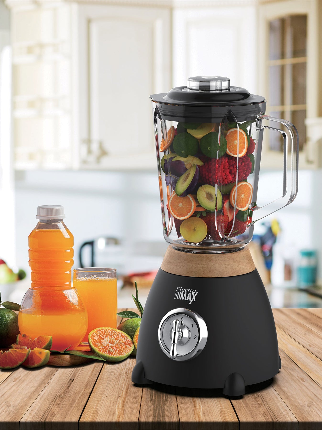 בלנדר חשמלי זכוכית שחור+ עץ 500W