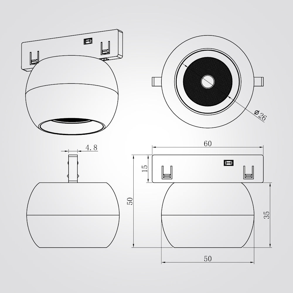 24V|5W| ספוט כדור חלבי לפ.צ מגנט שחור לייזר