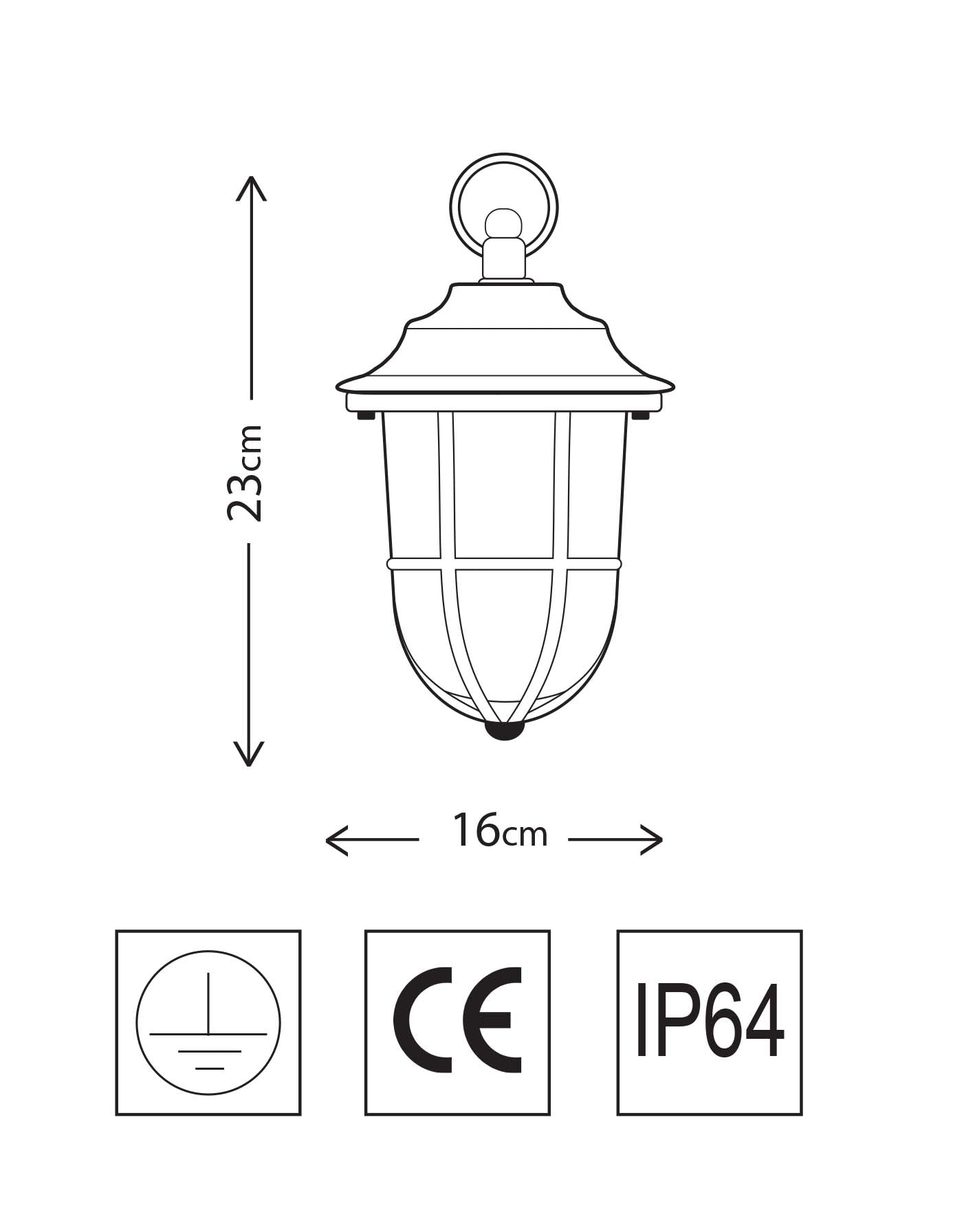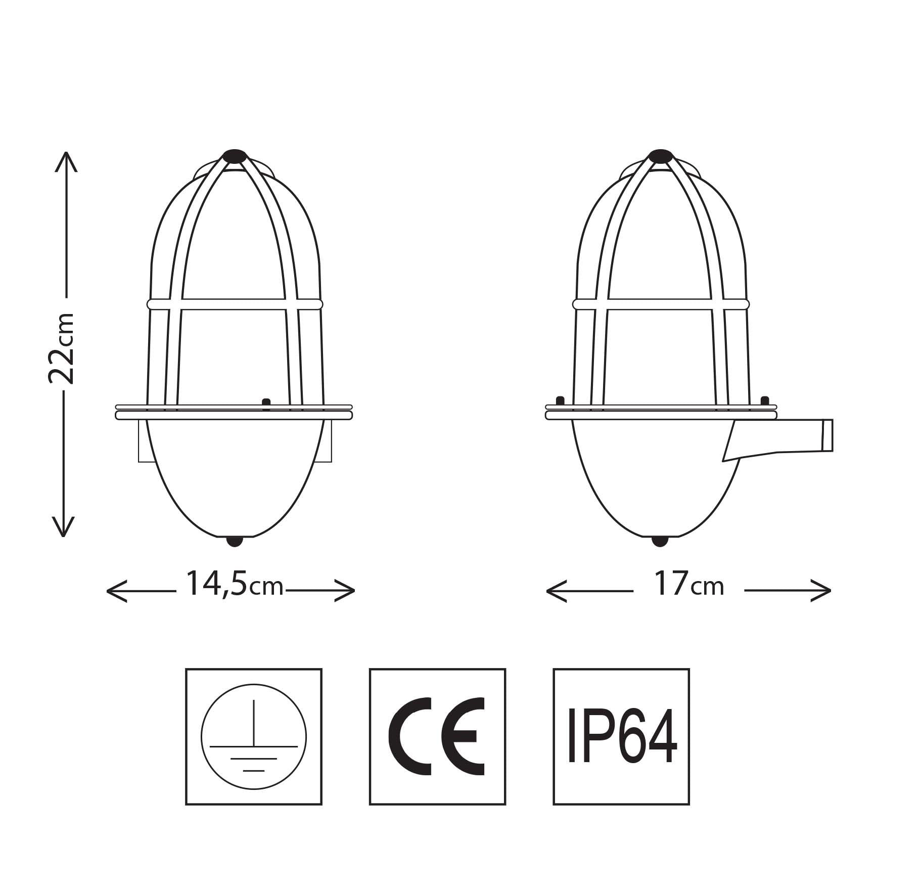 IP65 LIDO E27 קיר אנייה זרוע קצר ניקל