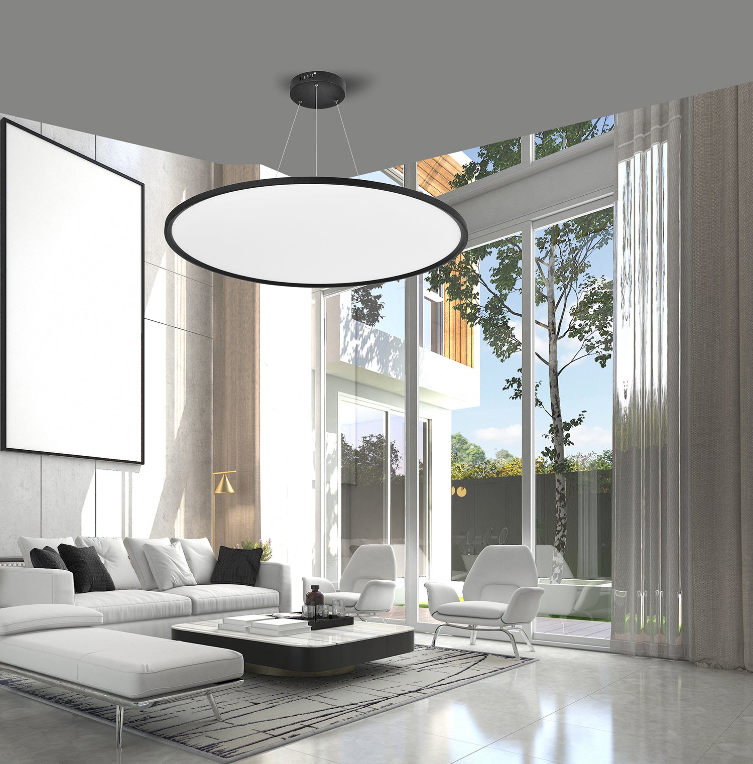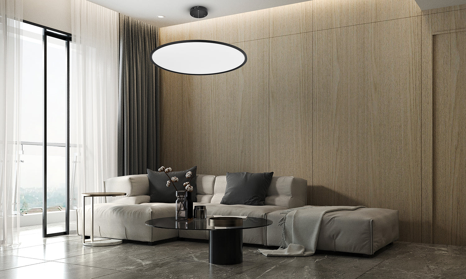 D400MM 32W פנל לד תליה אורן עגול שחור