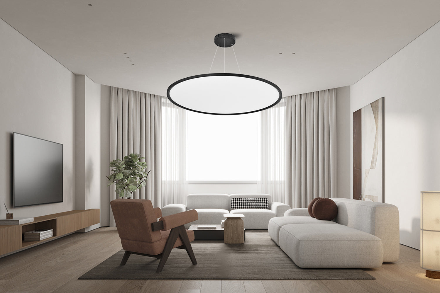 D600MM 56W פנל לד תליה אורן עגול שחור